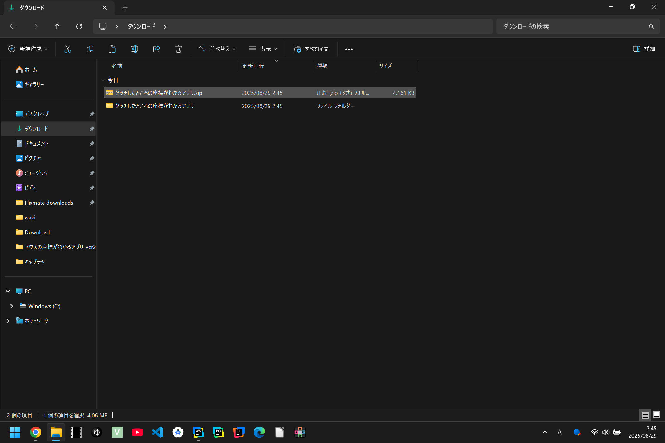 まず「最新版をダウンロード」の下にある文字をクリック、 そうすると一つのzipフォルダがダウンロードされます。